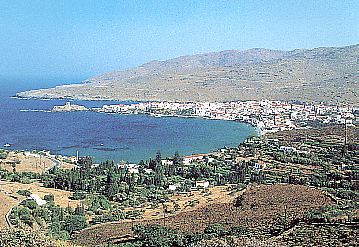 Andros, the most northerly island in the Cyclades and the second - largest in the group, is also among the most beautiful. Successive ranges of mountains with steep sides,separated by gorges, riverbeds and three large valleys planted with olive trees, figs, oranges, lemons and vines through which run numerous streams go to make this a landscape which often goes beyond what we think of as typically 'Cycladic'. The mountains end as rocky cliffs or steep promontories, while at the mouths of the valleys are sandy beaches. In the south - east is Andros Town or Hora, the capital of the island and its second most important harbour. This is the most attractive town, with neo-classical mansions side- by -side with Cycladic houses, steep and narrow alleys lined with arcades, fine churches and two pretty squares in the centre of a town which will make a lasting impression. Among the most important monuments of Hora are the castle, now ruined, and the church of Our Lady 'Palatiani' within its walls.