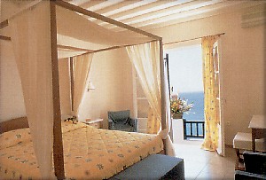 SERVICES AND FACILITIES Santa Marina Hotel is situated on a private peninsula overlooking Ornos Bay and the Aegean Sea 3 kilometres south of Mykonos town. There are 64 Hotel Rooms, 23 Suites and 4 Villas with their own swimming pool to offer the optimum in privacy and relaxation. All accommodations are equipped with: